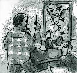 Anh thợ hớt tóc mở ngăn kéo lấy con dao cạo mài xoành xoạch vào miếng da treo lủng lẳng, sửa tư thế cho khách nằm ngửa cổ, thoa chút nước vào hàng ria rậm rồi hỏi bâng quơ: