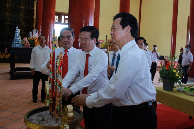 Các đồng chí lãnh đạo, nguyên lãnh đạo Đảng, Nhà nước dâng hương tưởng niệm các anh hùng liệt sĩ - Ảnh: VGP/Đình Nam