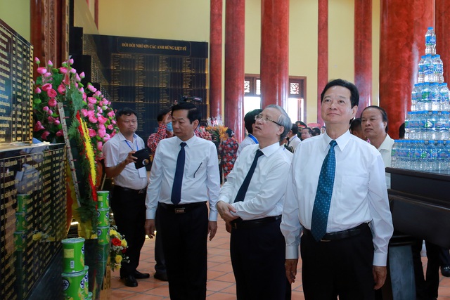 Nguyên Thủ tướng Nguyễn Tấn Dũng; nguyên Thường trực Ban Bí thư Trần Quốc Vượng thăm khu vực khắc tên các liệt sĩ hy sinh trên địa bàn Phú Quốc - Ảnh: VGP/Đình Nam