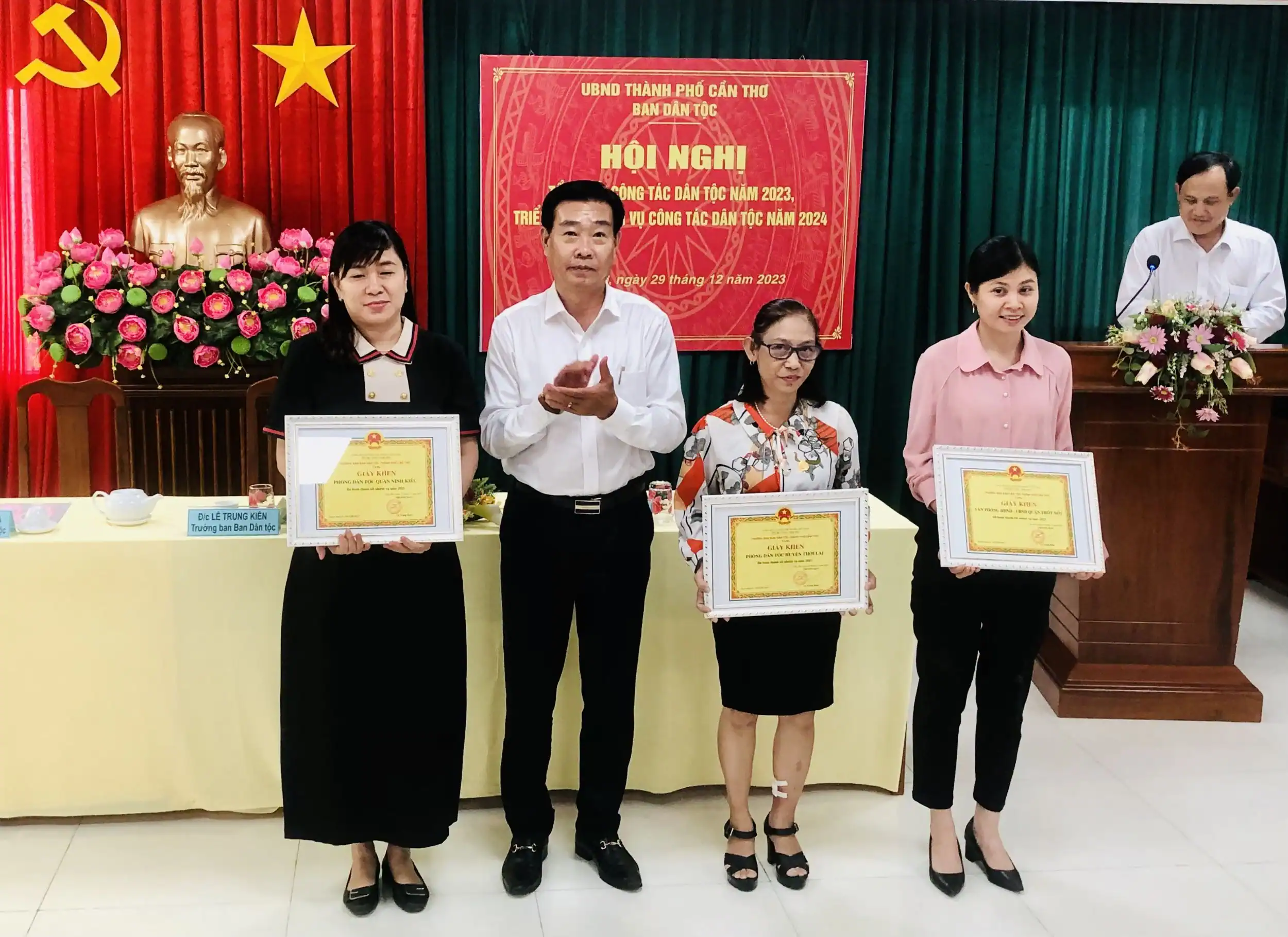 Dịp này, Chủ tịch UBND TP Cần Thơ tặng Bằng khen 1 cá nhân có nhiều đóng góp cho sự phát triển của TP Cần Thơ, giai đoạn 2013-2023. Trưởng Ban Dân tộc TP Cần Thơ trao Giấy khen 4 tập thể, 4 cá nhân hoàn thành tốt nhiệm vụ năm 2023.