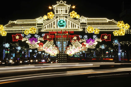 Đại lộ Hòa Bình rực rỡ đèn hoa chào mừng Đại hội Đảng lần thứ XII và Tết Bính Thân 2016. |