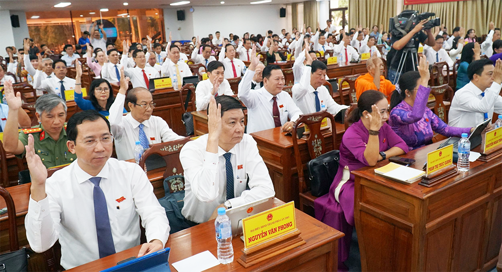 Đại biểu HĐND thành phố biểu quyết thông qua nghị quyết của kỳ họp. Ảnh: ANH DŨNG