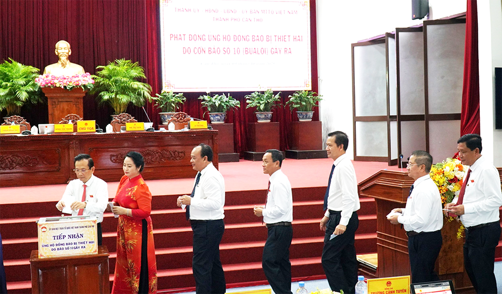 Đại biểu HĐND TP Cần Thơ ủng hộ đồng bào bị thiệt hại do bão số 10 gây ra. Ảnh: ANH DŨNG