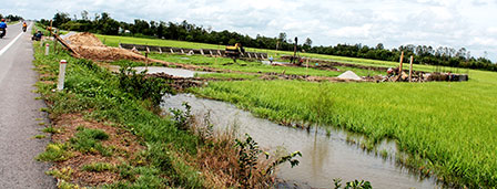 Đất lúa tại nhiều địa phương ở ĐBSCL đã và sẽ còn tiếp tục bị mất do bởi việc xây dựng đường giao thông, nhà ở và phát triển công nghiệp. Ảnh: VĂN CÔNG
