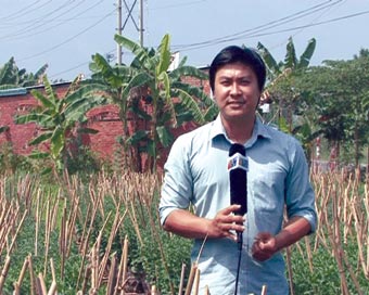 Nguyễn Hồng Quân dẫn chương trình tại hiện trường trong một chương trình truyền hình. Ảnh: do nhân vật cung cấp |