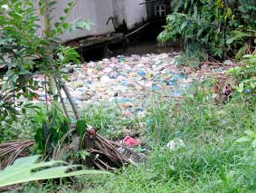 Rác thải ứ đọng dưới rạch Cầu Kinh, gây ô nhiễm môi trường.