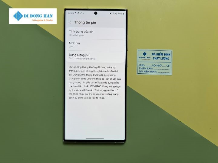S23 Ultra có viên pin lớn lên tới 5000mAh. Đây cũng là dung lượng pin trên các máy mới. Máy hoàn toàn có thể sử dụng 1-1,5 ngày tùy tác vụ.