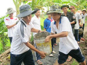 ĐVTN Trường Cảnh sát nhân dân III phối hợp với Quận đoàn Bình Thủy ra quân trải đá tuyến lộ dài hơn 650m thuộc khu vực Thới An, phường Thới An Đông (quận Bình Thủy). Ảnh: Q.T. |