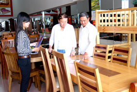 Khách hàng chọn mua nội thất gỗ tại cửa hàng Le Lumper, đường Lý Tự Trọng, quận Ninh Kiều. |