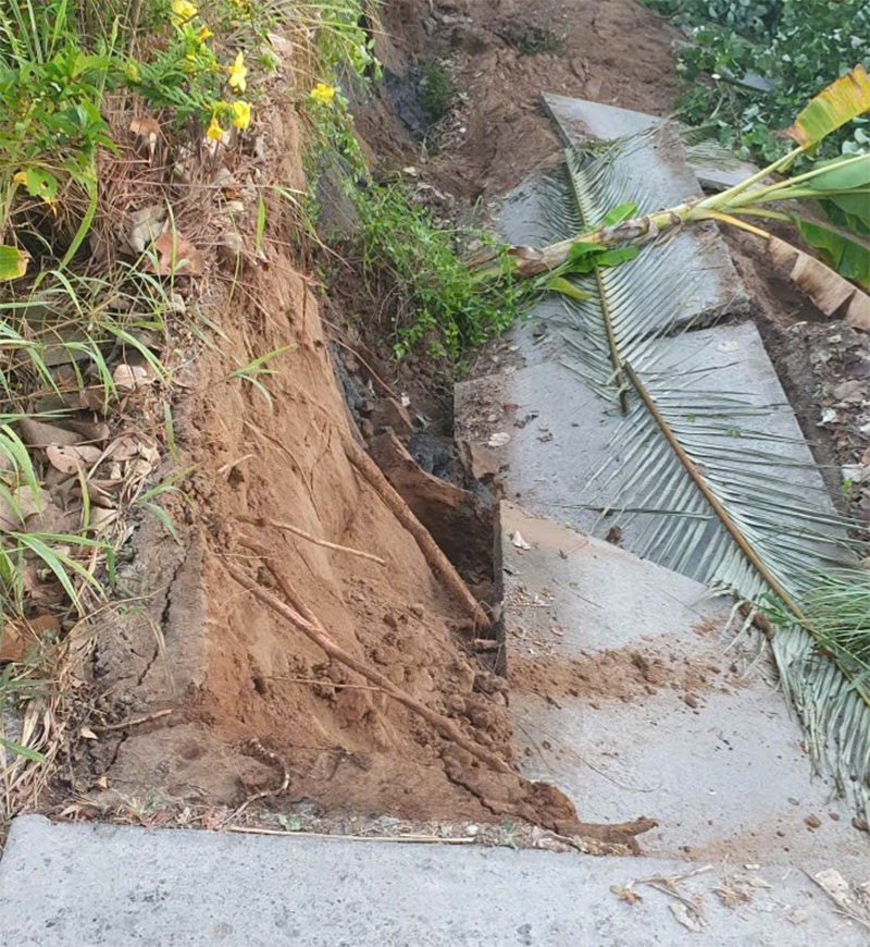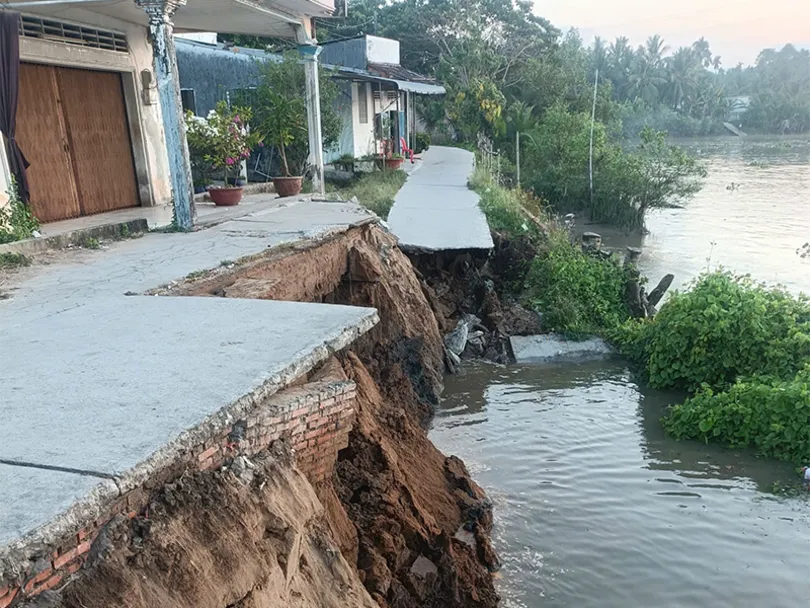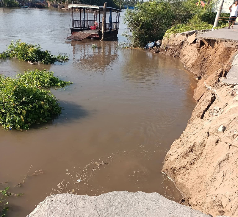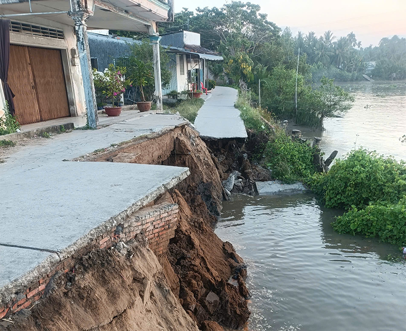 Sạt lở làm hàng chục mét đường giao thông nông thôn trôi tuột xuống sông