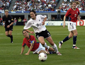 Renate Lingor (Số 6) nhạc trưởng của đội tuyển bóng đá nữ Đức liệu có còn phong độ? Ảnh: ljclark.com |