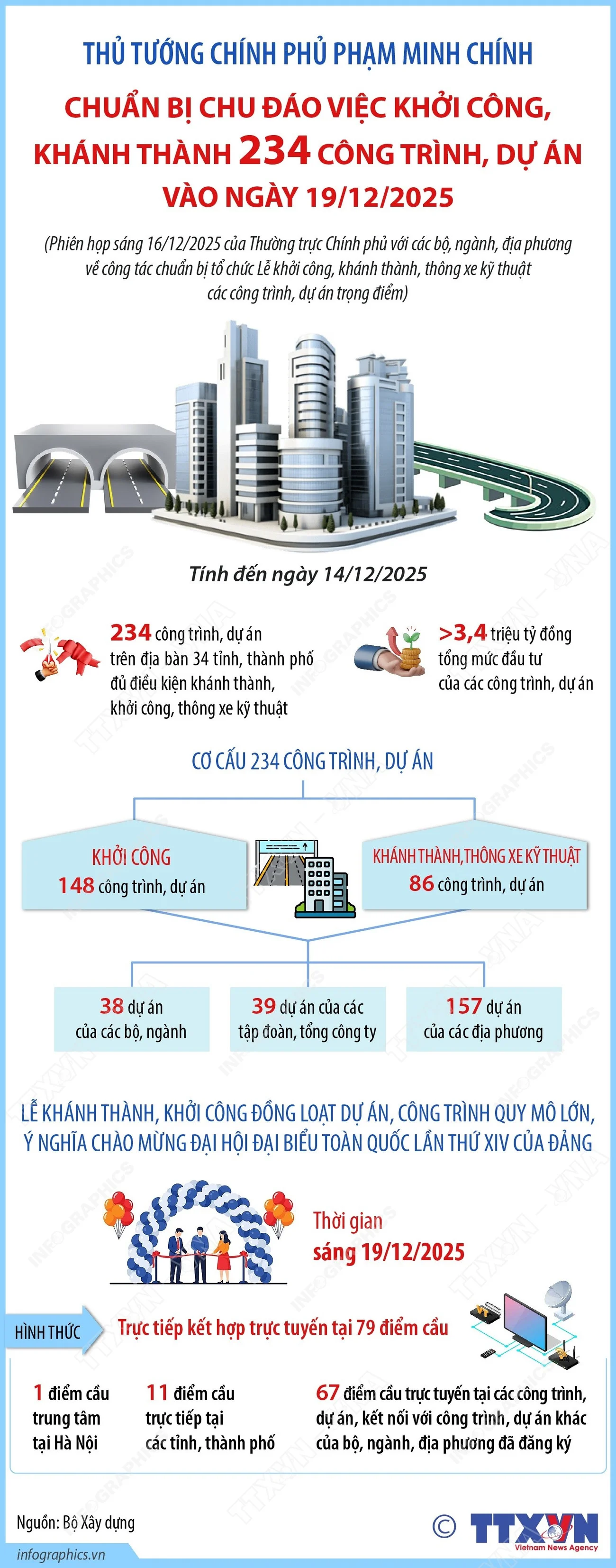 Sẽ khởi công, khánh thành 234 công trình, dự án vào ngày 19/12