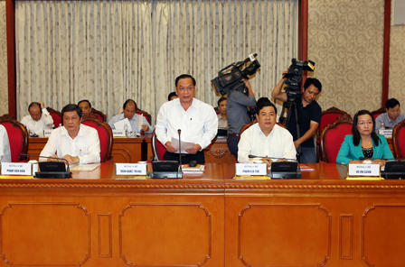 Đồng chí Trần Quốc Trung, Bí thư Thành ủy Cần Thơ báo cáo với Tổng Bí thư, các đồng chí trong Bộ Chính trị: Qua hơn 10 năm triển khai, tổ chức thực hiện NQ45, trong điều kiện còn nhiều khó khăn, nhưng với sự quan tâm chỉ đạo của Trung ương Đảng, Chính phủ, sự hỗ trợ của các bộ, ban, ngành Trung ương và các địa phương bạn, Đảng bộ, chính quyền và nhân dân TP Cần Thơ nỗ lực phấn đấu, đạt được những kết quả quan trọng, khá toàn diện. Qua 10 năm, kinh tế thành phố tăng trưởng nhanh hơn giai đoạn trước, tốc độ tăng bình quân đạt 13,98%. Cơ cấu kinh tế chuyển dịch theo hướng tích cực, tăng dần tỷ trọng khu vực dịch vụ - thương mại, công nghiệp và giảm dần tỷ trọng khu vực nông nghiệp. Đến năm 2015, tổng sản phẩm trên địa bàn tăng gấp 4,2 lần so với năm 2004, GDP bình quân đầu người tăng gấp 7,7 lần so với năm 2004. Tổng thu ngân sách nhà nước trên địa bàn tăng gấp 8,9 lần so với năm 2004, bình quân tăng 16,95%/năm. Quá trình công nghiệp hóa, hiện đại hóa của thành phố tiến hành đồng bộ trên tất cả các lĩnh vực: nông nghiệp, nông thôn, công nghiệp, dịch vụ, quản lý kinh tế - xã hội. Sản xuất công nghiệp, tiểu thủ công nghiệp, ngành nghề nông thôn không ngừng phát triển... Hoạt động thương mại của thành phố có bước phát triển mạnh, tổng mức hàng hóa bán lẻ trên địa bàn tăng. Lĩnh vực dịch vụ tăng nhanh về số lượng và chất lượng theo hướng đa dạng hóa loại hình, hướng tới những ngành dịch vụ có giá trị lớn. Hệ thống dịch vụ vận tải phát triển nhanh cả đường bộ, đường thủy và hàng không, đáp ứng nhu cầu đi lại, vận chuyển hàng hóa với chất lượng phương tiện và dịch vụ ngày càng cao; khối lượng vận chuyển hàng hóa, vận chuyển hành khách đứng đầu trong vùng và đứng thứ 3 cả nước... Thành phố đã tích cực phối hợp với bộ, ngành Trung ương tập trung xây dựng hệ thống giao thông và các công trình phụ trợ; một số công trình giao thông trọng điểm được ưu tiên đầu tư, nâng cấp và đưa vào khai thác, sử dụng đã tạo sức lan tỏa, kết nối vùng và cả nước, như: cầu Cần Thơ, nâng cấp và mở rộng Sân bay quốc tế Cần Thơ, cảng Cái Cui, đường Nam sông Hậu... Đến nay, thành phố đã thể hiện vai trò trung tâm trên một số lĩnh vực như: thương mại, giao thông vận tải, tài chính - ngân hàng, thông tin truyền thông, giáo dục, y tế... Các lĩnh vực văn hóa - xã hội của thành phố có nhiều tiến bộ; quy mô và chất lượng giáo dục - đào tạo, y tế được mở rộng và nâng cao; đáp ứng bước đầu nguồn nhân lực có chất lượng cao... Thành phố thực hiện tốt chính sách an sinh xã hội, giảm nghèo; kết hợp chặt chẽ phát triển kinh tế - xã hội với củng cố quốc phòng - an ninh... Bên cạnh đó, thành phố tập trung đổi mới phương thức lãnh đạo của cấp ủy, nâng cao năng lực lãnh đạo, sức chiến đấu của tổ chức cơ sở đảng, đảng viên; triển khai kịp thời, nghiêm túc các nghị quyết của Trung ương