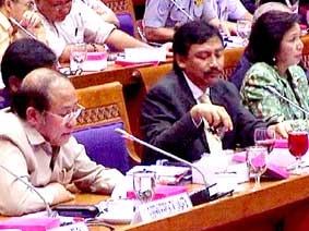 Bà Wahyusih Subowo (bìa phải) và các quan chức thể thao Indonesia báo cáo về công tác chuẩn bị SEA Games. Ảnh: Beritajakarta.com |