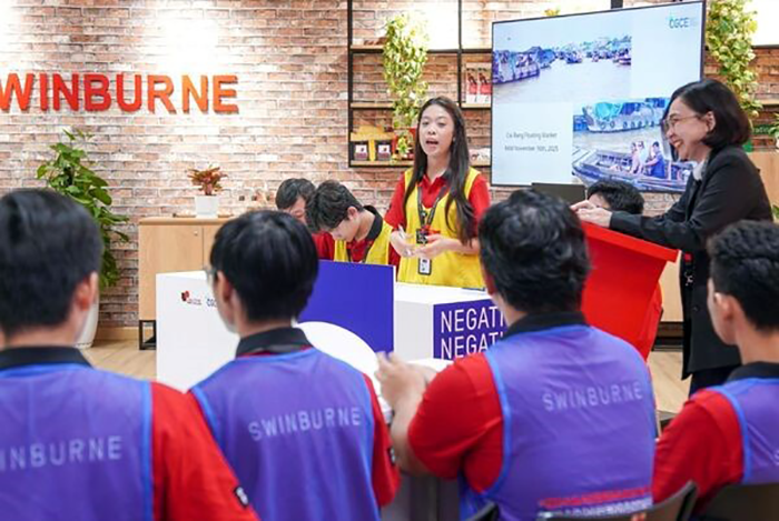 Sinh viên Swinburne Vietnam - Cần Thơ tranh biện việc bảo tồn bằng cách nào để không làm mất đi sinh kế và nhịp sống thực của người dân chợ nổi.