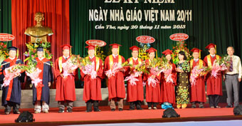 * Chiều cùng ngày, tại Trường ĐH Cần Thơ, ngoài việc ôn lại truyền thống "Tôn sư trọng đạo", dịp 20-11 này, trường còn vinh danh các nhà giáo vừa được công nhận chức danh Giáo sư (GS), Phó giáo sư (PGS). Năm 2013, trường có thêm 2 GS và 15 PGS, nâng tổng số GS, PGS của trường lên 87 thầy, cô. Hiện nay, trường có hơn 2.000 cán bộ, giảng viên; trong đó có hơn 75% giảng viên có trình độ sau đại học, đủ đáp ứng yêu cầu đào tạo hơn 54.000 sinh viên, học viên. Dịp này, nhiều tập thể, cá nhân được khen thưởng cao.