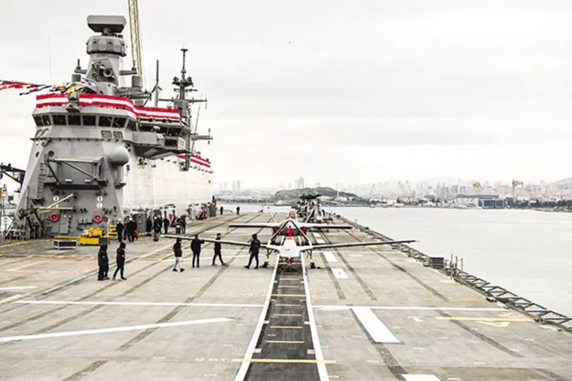 Hồi tháng 4-2023, Thổ Nhĩ Kỳ đã biên chế tàu chiến lớn nhất của nước này, TCG Anadolu. Ankara nhiều lần tự hào rằng đây là tàu sân bay UAV đầu tiên trên thế giới, bởi UAV sẽ chiếm phần lớn phi đội hoạt động trên chiến hạm này.