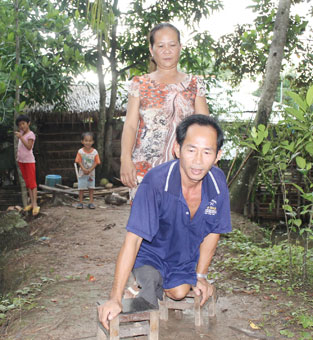 Mỗi bước đi của anh Trần Thanh Tùng đều có vợ dõi theo. Ảnh: ĐĂNG HUỲNH. |