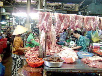 Mua bán thịt heo tại Trung tâm Thương mại Cái Khế, TP Cần Thơ. |