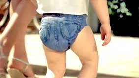 quần jean, dành cho những em bé chập chững biết đi. Sản phẩm này cho phép các ông bố bà mẹ chỉ mặc mỗi chiếc tã cho trẻ, thay vì phải tròng thêm chiếc quần bên ngoài. Một mẩu quảng cáo phát trên trang YouTube cho thấy mọi người xung quanh hết sức bất ngờ và thích thú khi nhìn thấy một em bé “sành điệu” với chiếc tã jean (ảnh). Loại tã này được thiết kế có nhiều túi và những đường may dập nổi giống như của quần jean, nhưng vẫn bảo đảm chức năng của tã giấy là thấm hút chất lỏng và chống tràn. Sản phẩm hiện đã có mặt tại Mỹ với 3 kích cỡ khác nhau và giá 12 USD (230.000 đồng)/gói 29 miếng.