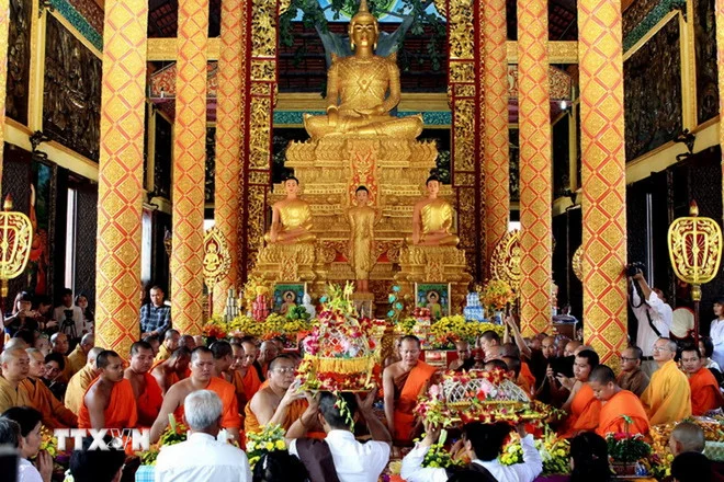 Quang cảnh Đại lễ dâng y Kathina tại chính điện. (Ảnh: Nguyễn Dân/TTXVN)