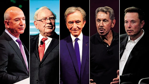 Năm người giàu nhất hành tinh gồm Elon Musk, người điều hành nhiều công ty trong đó có hãng xe Tesla và SpaceX; Bernard Arnault, Chủ tịch tập đoàn hàng xa xỉ LVMH; Jeff Bezos, nhà sáng lập tập đoàn thương mại điện tử Amazon; Larry Ellison, Chủ tịch hãng phần mềm Oracle; Warren Buffet, Giám đốc điều hành (CEO) Tập đoàn đa quốc gia Berkshire Hathaway.