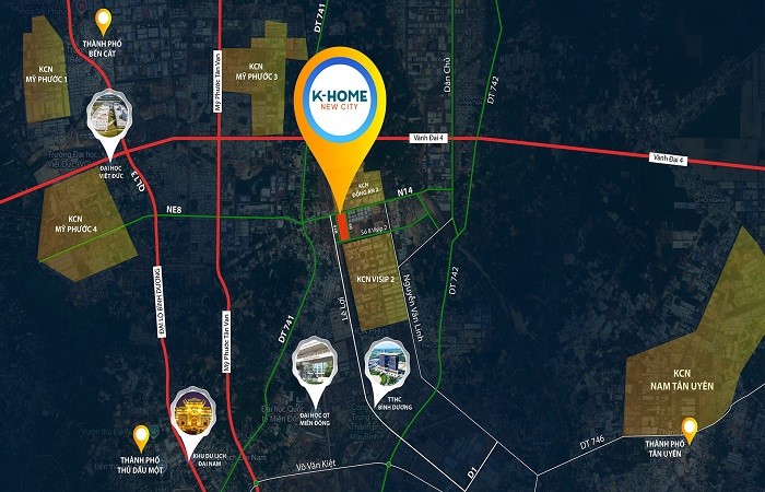 K-Home New City là dự án khu đô thị do Kim Oanh Group và Tập đoàn Surbana Jurong (Singapore) hợp tác phát triển, nằm ngay 3 mặt tiền đường Lê Lai, Nguyễn Văn Linh và đường số 8, Khu công nghiệp VSIP 2, thuộc phường Bình Dương, TP Hồ Chí Minh.