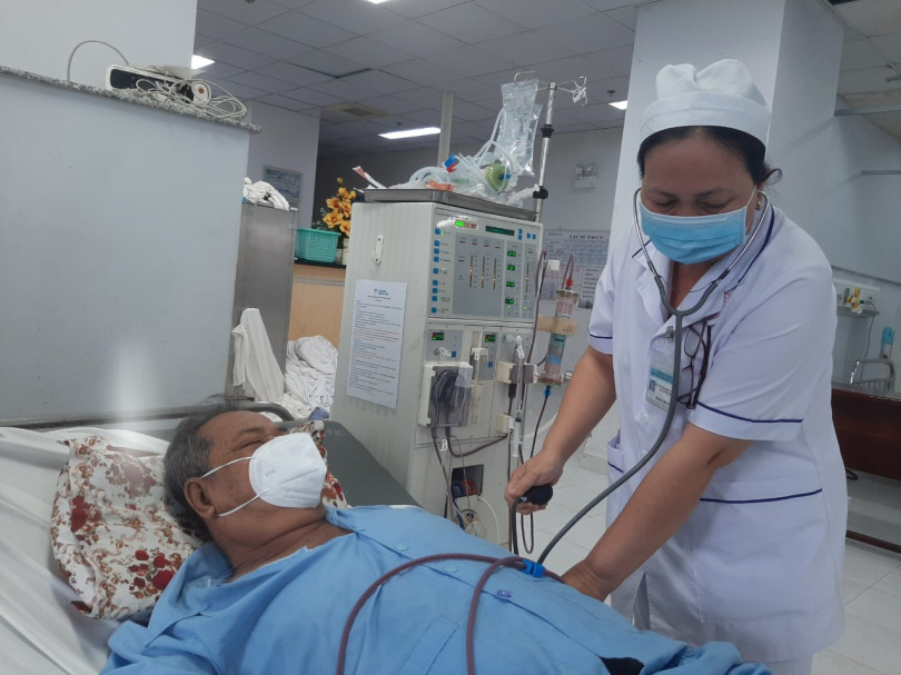 Cán bộ y tế BV Đa khoa TP Cần Thơ kiểm tra sức khỏe bệnh nhân lọc thận tại BV. Ảnh minh họa.