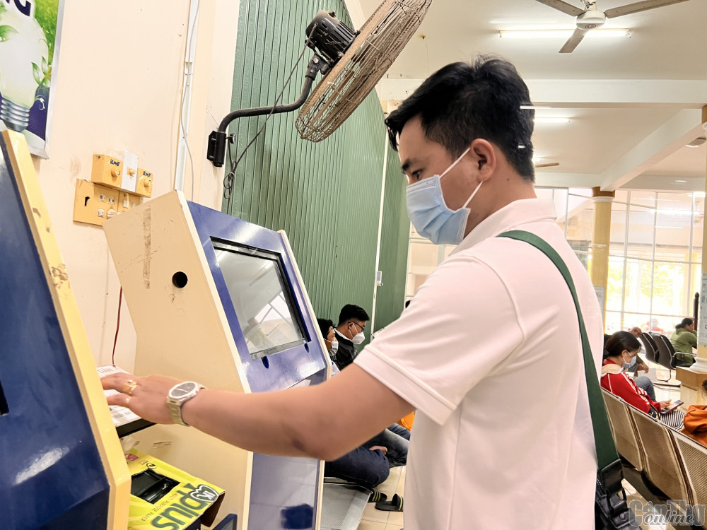 NLĐ thực hiện thủ tục hưởng chế độ BHXH tại Bộ phận Một cửa UBND huyện Thới Lai. Ảnh: C.H