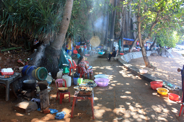 Các cơ sở dịch vụ ăn uống, thức ăn đường phố là một trong những nơi được tăng cường kiểm tra đảm bảo an toàn vệ sinh thực phẩm. (Ảnh chụp tại lối đi vào điểm du lịch Hòn Phụ Tử, huyện Kiên Lương, tỉnh Kiên Giang). |