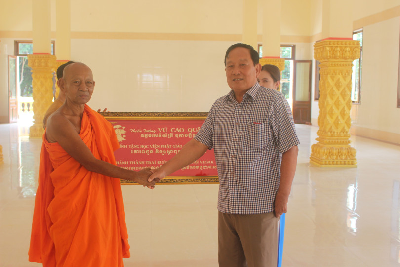 Tặng khánh chữ mạ vàng cho Học viện Phật giáo Nam tông Khmer