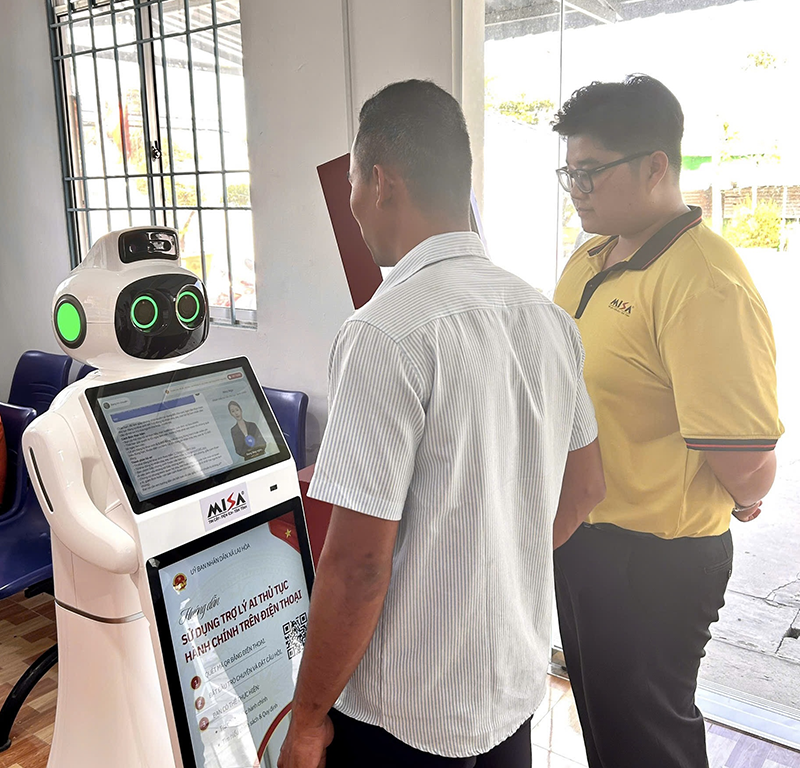 Nhiều địa phương đẩy mạnh CĐS, góp phần nâng cao hiệu quả hoạt động của cơ quan nhà nước, phục vụ người dân ngày càng tốt hơn. Điển hình như UBND xã Lai Hòa phối hợp Văn phòng đại diện Công ty Cổ phần MISA tại TP Cần Thơ vừa triển khai Hệ thống trí tuệ nhân tạo (AI) phục vụ công việc hành chính, Robot lễ tân tại Trung tâm Phục vụ hành chính công xã. Robot lễ tân có giao diện trực quan, giọng nói rõ ràng và khả năng tương tác tự nhiên, giúp người dân dễ dàng tra cứu TTHC, tư vấn thành phần hồ sơ, phí và thời gian giải quyết.