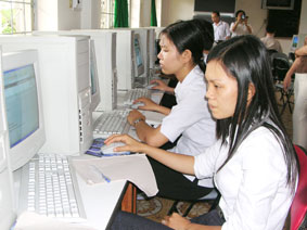 | Sinh viên Trường Cao đẳng Cần Thơ trong giờ thực hành Tin học. |