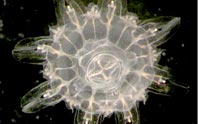 Các chuyên gia Hiệp hội Sinh vật biển ở Anh vừa thu hoạch đàn sứa được tạo ra trong môi trường thí nghiệm để nghiên cứu thói quen ăn mồi của sinh vật dưới biển cả. Ảnh chụp dưới kính hiển vi cho thấy con sứa bông tuyết hình mặt trăng màu pha lê với thân mình đối xứng (ảnh). Các nhà khoa học cho rằng loài sứa có nhiều điểm tương đồng với các loài sinh vật có cấu trúc cơ thể phức tạp như rùa biển, cá mập và chim biển về khía cạnh săn tìm thức ăn. Vì thế có thể sử dụng sứa nhân tạo này để nghiên cứu những loài vật kia.