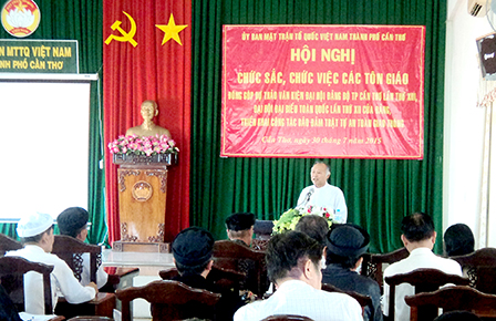 Các chức sắc, chức việc, nhà tu hành tham gia góp ý Dự thảo Văn kiện Đại hội Đại biểu Đảng bộ TP Cần Thơ lần thứ XIII và Dự thảo Văn kiện Đại hội Đại biểu toàn quốc lần thứ XII của Đảng. Ảnh: TÂM KHOA