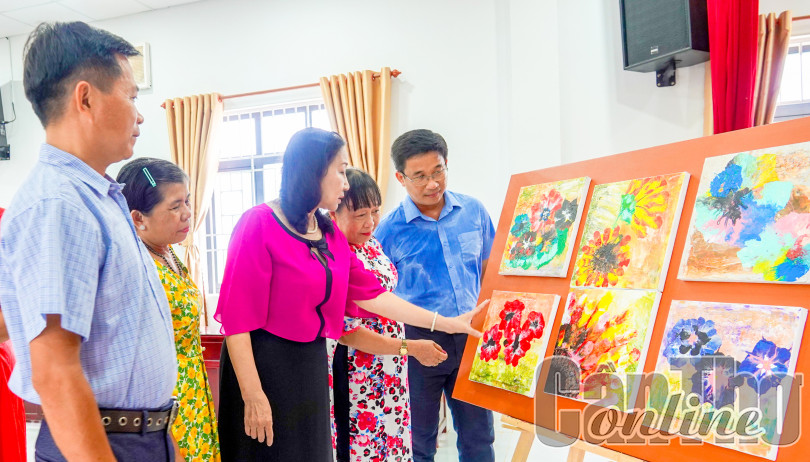 Văn nghệ sĩ Cần Thơ xem tác phẩm tại Trại Sáng tác VHNT TP Cần Thơ năm 2022 do Liên hiệp các Hội VHNT TP Cần Thơ phối hợp Nhà Sáng tác Cần Thơ tổ chức. Ảnh: DUY KHÔI