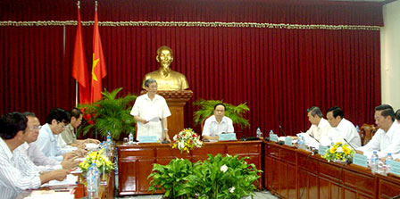 Đồng chí Đinh Thế Huynh phát biểu chỉ đạo tại buổi làm việc với Ban Thường vụ Thành ủy Cần Thơ.