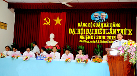 Phát biểu chỉ đạo đại hội, đồng chí Phạm Thanh Vận, Phó Bí thư Thường trực Thành ủy biểu dương những nỗ lực, thành quả mà Đảng bộ và nhân dân quận Cái Răng đã đạt được trong thời gian qua. Đồng chí Phó Bí thư lưu ý: Trong thời gian tới, Đảng bộ cần có những giải pháp tích cực để phát huy tối đa nội lực và tranh thủ các nguồn lực từ bên ngoài để đẩy nhanh hơn nữa tốc độ chuyển dịch cơ cấu kinh tế, cơ cấu lao động phù hợp với tiềm năng, lợi thế của địa phương. Chủ động, tăng cường công tác tổ chức triển khai thực hiện và quản lý quy hoạch, phát triển đô thị gắn với môi trường sinh thái, cảnh quan theo hướng văn minh, hiện đại, xanh sạch đẹp. Quận cần hết sức quan tâm công tác giáo dục chính trị, lãnh đạo tư tưởng; tiếp tục đổi mới và chỉnh đốn Đảng, xây dựng Đảng trong sạch vững mạnh; nâng cao năng lực, chất lượng đội ngũ cán bộ, đảng viên lên ngang tầm với yêu cầu nhiệm vụ.
