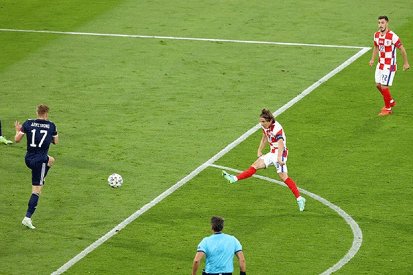 Croatia bước vào EURO năm nay với tư cách đội Á quân World Cup 2018. Thế nhưng sau trận ra quân, nhiều người hoài nghi về khả năng tiến xa của tiền vệ Luka Modric và các đồng đội. Họ thua Anh 0-1, hòa CH Czech 1-1 và đến lượt đấu cuối gặp Scotland, thầy trò của HLV Zlatko Dalic mới thi đấu bùng nổ để giành vé vào vòng loại trực tiếp. Có người ví von Croatia thi đấu như những chú hổ thu mình, rình rập rồi bất ngờ vồ lấy con mồi bằng cú nhảy uy lực. Chính bàn thắng của Modric vào lưới Scotland đã giúp Croatia tái lập thế dẫn trước và sau đó Quả bóng Vàng 2018 này còn kiến tạo để đồng đội ấn định tỷ số 3-1. Ðáng nói, cú vẩy má ngoài đẳng cấp đó đã đưa anh đến với kỷ lục cầu thủ nhiều tuổi nhất ghi bàn cho Croatia tại vòng chung kết EURO: 35 tuổi 286 ngày.