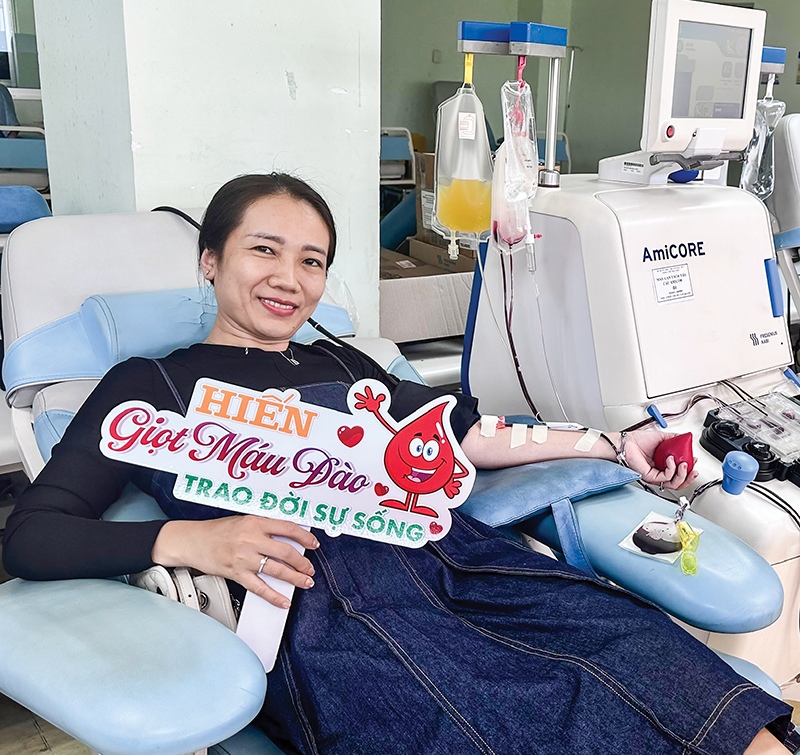 Hiến tiểu cầu, nói nôm na là máu của người hiến qua máy chiết tách, chỉ lấy tiểu cầu, còn các thành phần máu khác trả lại cho người hiến nên khi hiến tiểu cầu chỉ cần 2 tuần là có thể hiến 1 lần, trong khi hiến máu toàn phần phải cách 3 tháng giữa các lần hiến. Chính vì thế, từ tháng 11-2025 đến nay, bác sĩ Huỳnh Ngọc Hân đã hiến tiểu cầu 3 lần.