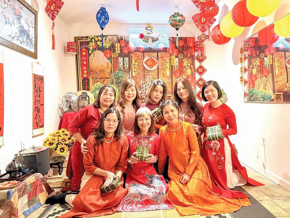Kiều bào gìn giữ truyền thống mặc áo dài trong dịp Tết cổ truyền.