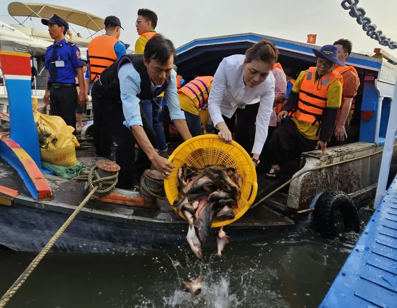 Thả 50 tấn cá tra xuống sông Hậu