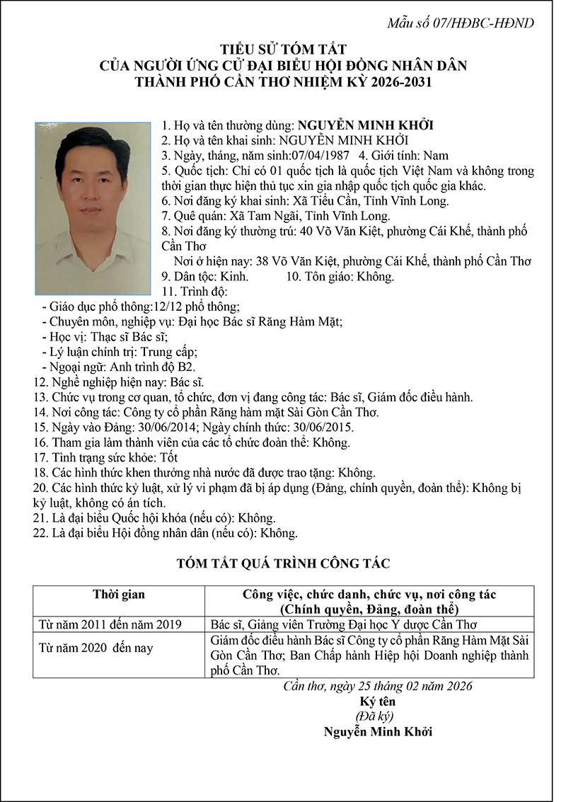 Nghị quyết về việc lập và công bố danh sách chính thức những người ứng cử đại biểu Hội đồng nhân dân thành phố Cần Thơ nhiệm kỳ 2026-2031 theo từng đơn vị bầu cử