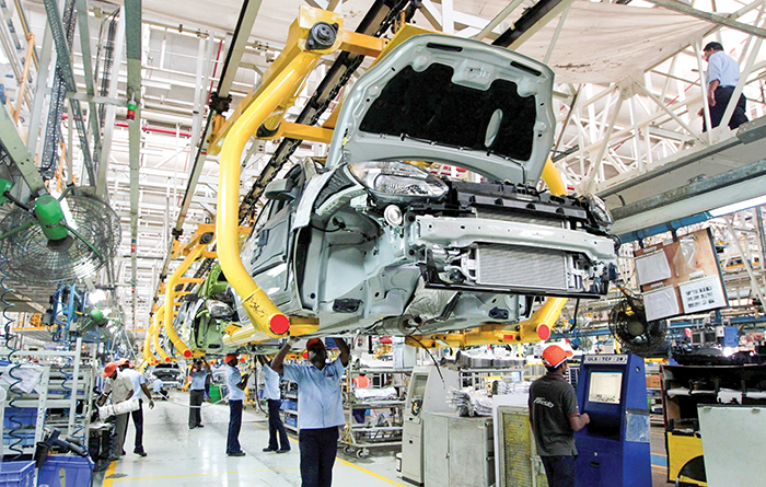 Công nhân Ấn Độ làm việc tại xưởng sản xuất ô tô. Ảnh: Reuters