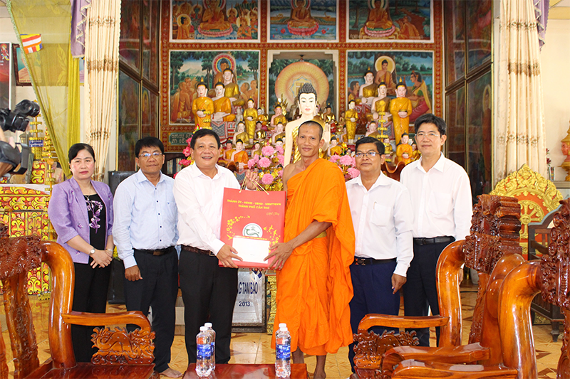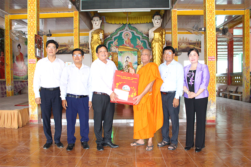 Đoàn thăm, chúc Tết Chôl Thnăm Thmây Chùa H’Luông Bassac Bai Chau.