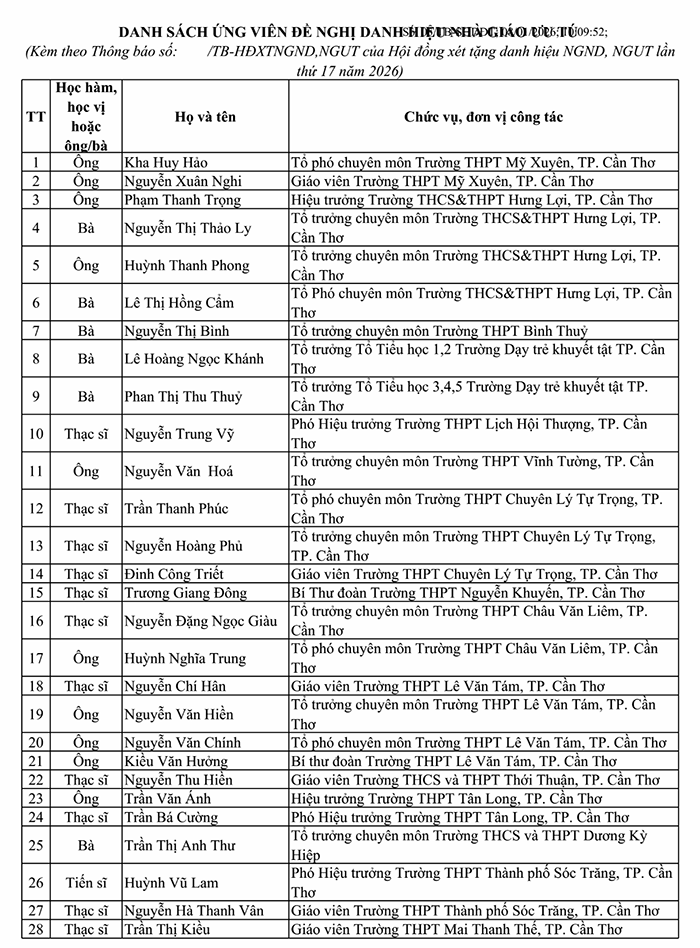 - Thăm dò dư luận đối với các ứng viên đề nghị xét tặng danh hiệu Nhà giáo ưu tú
