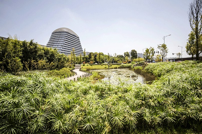 Hồ chứa nước được xây dựng ở một “thành phố bọt biển” tại Thâm Quyến. Ảnh: Bloomberg