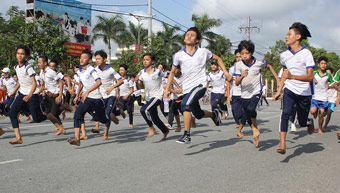 Các VĐV tranh tài Giải Việt dã HKPĐ huyện Phong Điền năm học 2015-2016. |
