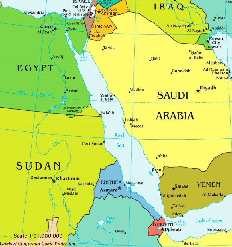 Bản đồ khu vực Biển Đỏ. Ảnh: onetheworldmap