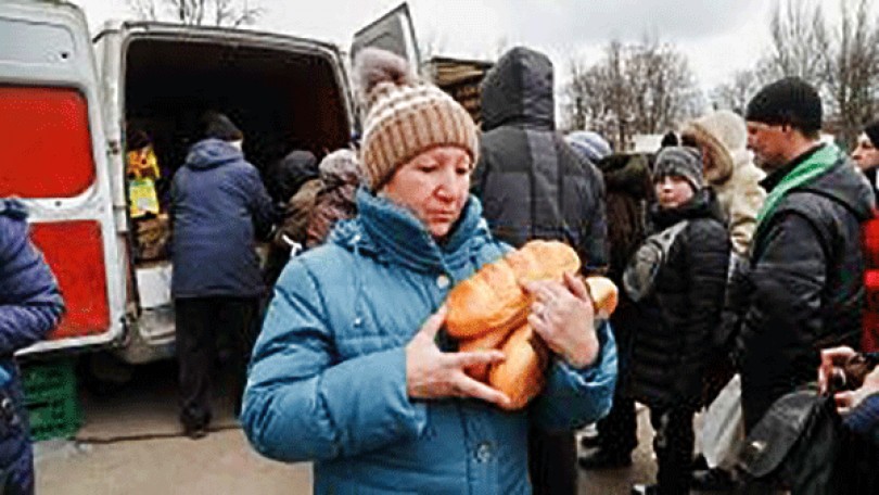 Người dân Ukraine nhận bánh mì cứu đói. Ảnh: Getty Images